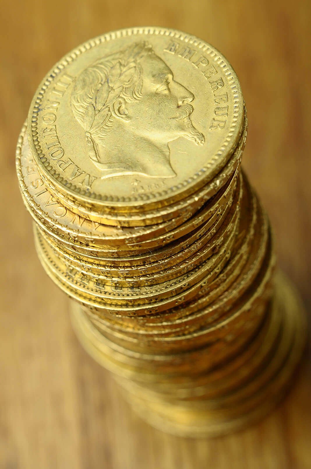 Pile of gold coins from France, a Napoleon